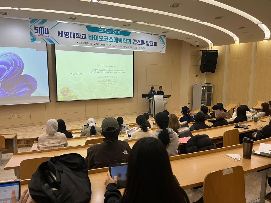 본문 시작 홈으로 커뮤니티 학과소개 학과과정 대학원 커뮤니티 연구동아리 홈페이지가이드 포토갤러리 학과공지 채용정보 학과일정 포토갤러리 유튜브 인스타그램 취업현황 학생회 조직도 졸업생 숏터뷰 포토갤러리 페이스북 트위터 프린트 2025학년도 2학기 캡스톤 디자인 발표회 바이오코스메틱학과 434 2025-11-25 바이오코스메틱학과에서는 11월 24일 2025학년도 2학기 캡스톤 디자인 발표회를 진행하였습니다. 목록 이전2025학년도 5차 화장품생명공학세미나 다음 2025학년도 F.P.L 동아리 핸드크림 제조 실습 담당부서 : 바이오코스메틱학과 담당자 : - 연락처 : 043-649-1638 최종수정일 : 2024-10-26 만족도조사 만족도 조사 이 페이지에서 제공하는 정보에 대하여 만족하시나요? 매우만족 만족 보통 불만족 매우불만족