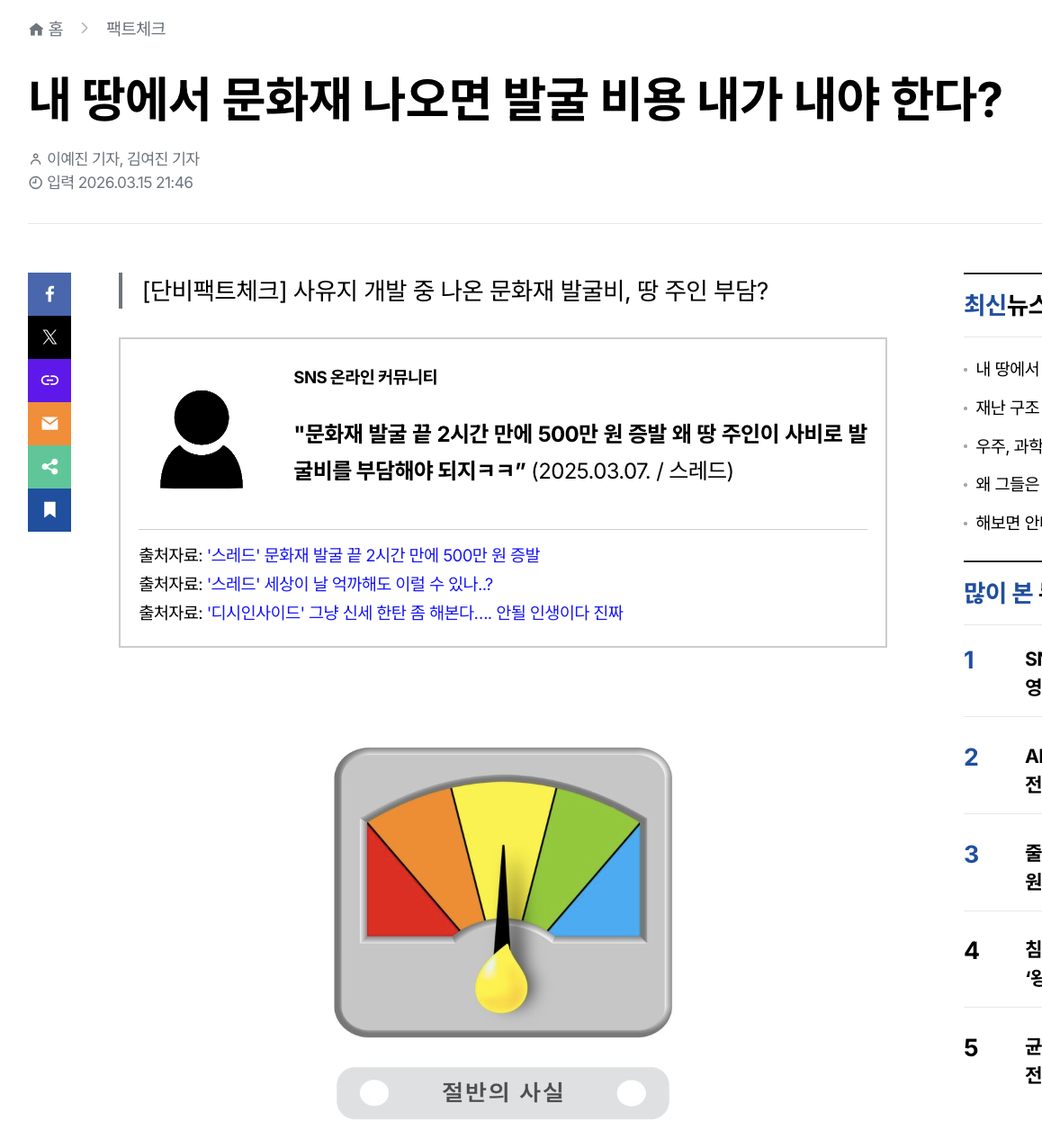 문화재 발견 시 발굴 비용을 토지 소유자가 모두 부담해야 한다는 온라인상에서의 주장은 맞을까?