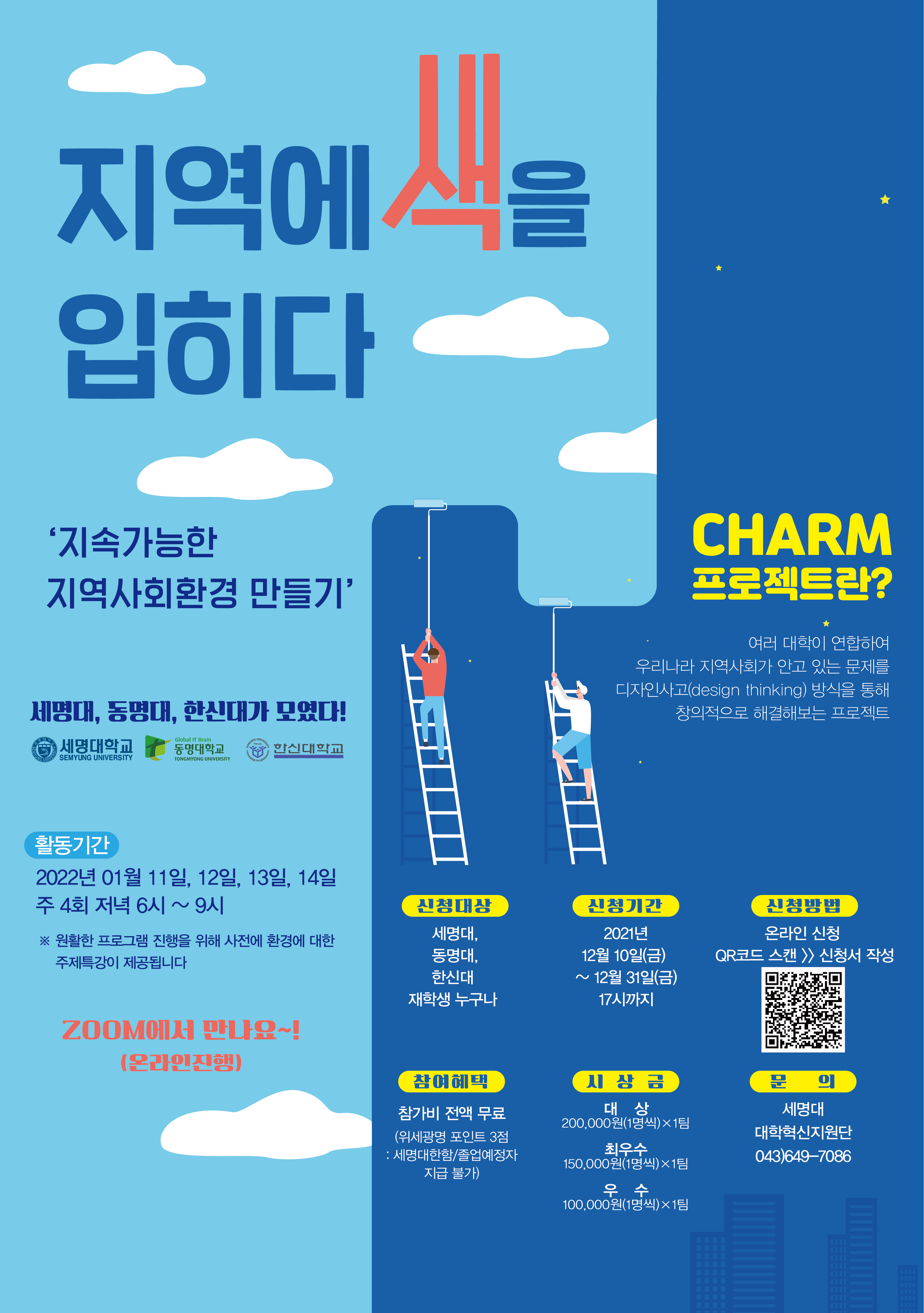 이런 고민을 하고 있다면, 지금 바로 세명대-동명대-한신대 연합 프로그램 “참(CHARM) 프로젝트”에 참여하세요!